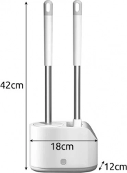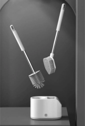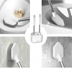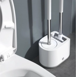 De RUHHY-set bevat twee koppen voor een perfect schoon toilet zonder moeite. De ronde TPR-kop (thermoplastisch rubber) is flexibel, krast niet op keramiek en bereikt gemakkelijk onder de rand. De platte, driehoekige kop van stevig PP pakt kalkaanslag aan op moeilijk bereikbare plekken en in hoeken.