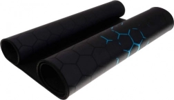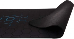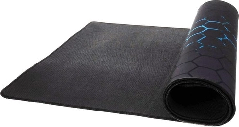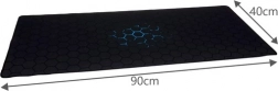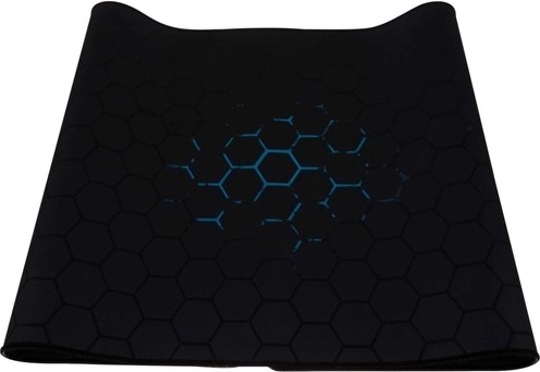 Fijn geweven textiel verbetert de tracking van optische en lasersensoren en biedt de ideale balans tussen snelheid en controle. Het stijlvolle “honingraat”-patroon in zwart‑blauwe uitvoering beschermt tegelijkertijd het tafelblad tegen krassen en slijtage.
