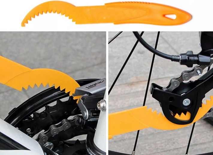 - bandenborstel, microvezel-handschoen, smalle kierborstel, haak/schraper voor cassette, kettingborstel, universele borstel, cassetteborstel