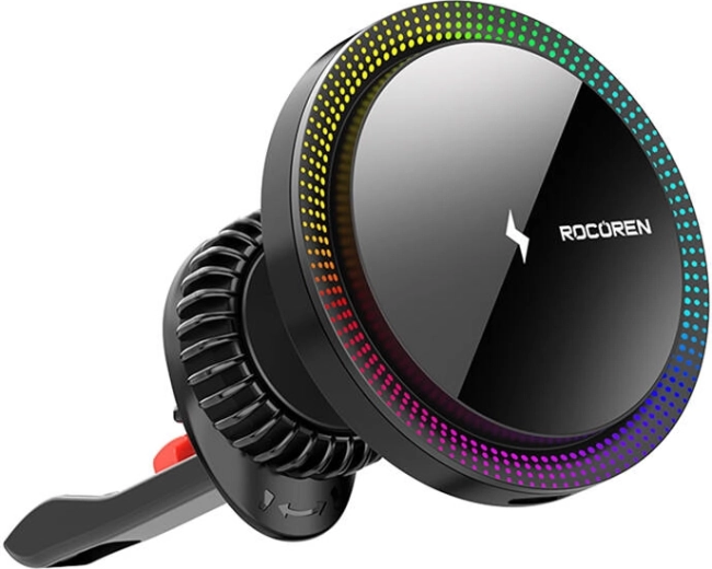 De draadloze autolader van Rocoren is ideaal voor diegenen die comfort en esthetiek waarderen. Biedt snel opladen van 5W tot 15W en ondersteunt snelle oplaadprotocollen QC3.0 en PD2.0, wat zorgt voor onmiddellijke telefoonsnelheid. De lader is eenvoudig te bevestigen aan de ventilatieopeningen van de auto en past goed bij elk interieur dankzij het elegante zwarte design met LED-verlichting.