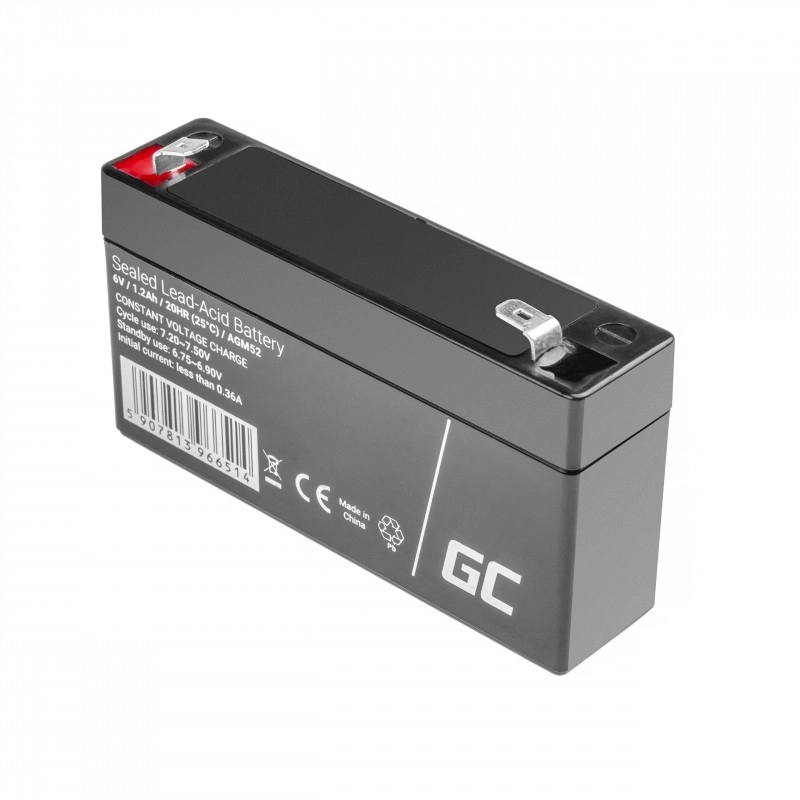 | Naam: AQUA-accu met batterij, bedoeld voor het voeden van accu’s: | Onderhoudsvrije AGM VRLA-accu Green Cell AGM52 6V 1,2Ah (voor beveiligingssysteem, kassa, speelgoed) |