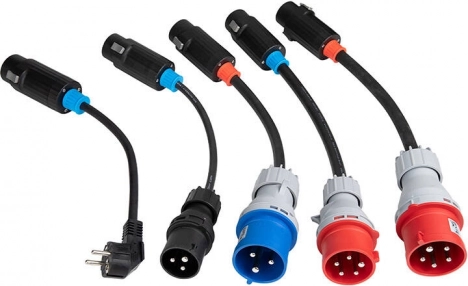 - Brede reeks adapters voor diverse stopcontacten (CEE, Schuko, UK)