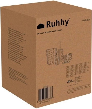 Deze 6-delige set badkameraccessoires combineert matzwarte geribbelde oppervlakken met natuurlijke bamboe-accenten. Dankzij de duurzame kunststoffen PP/ABS en elementen van roestvrij staal is hij ideaal voor vochtige omgevingen, gemakkelijk te reinigen en behoudt hij langdurig zijn elegante uitstraling.
