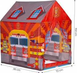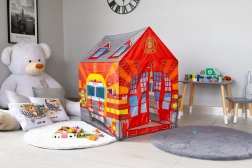 De kindertent Brandweerstation zal alle kleine helden blij maken. Realistische prints van de brandweerwagen en uitrusting moedigen kinderen aan tot rollenspel en zelfstandig spelen. De lichte maar stabiele constructie en de duurzame polyester bekleding zorgen voor eenvoudig transport en veilig gebruik thuis en buiten.