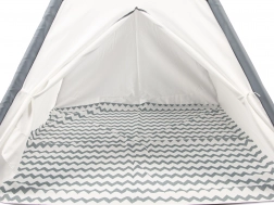 Inclusief een doorlopende vloer voor extra comfort, waardoor gebruik op het terras of in de tuin mogelijk is. De oprolbare en afsluitbare ingang geeft kinderen een gevoel van privacy, en de hoes is bovendien makkelijk schoon te maken. De montage is in enkele minuten klaar – de stokken worden eenvoudig aan elkaar gezet en bovenaan samengebonden.