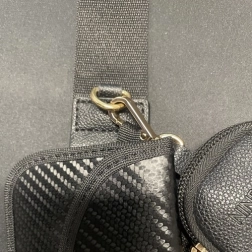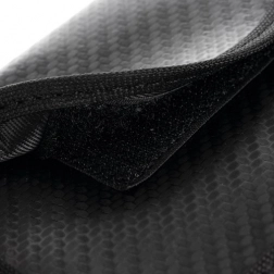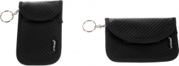 Elk hoesje heeft twee afzonderlijke vakken – een dieper vak met ring voor de autosleutel (afschermend) en een kleiner vak voor betaal- en toegangspassen. Het slijtvaste PU-oppervlak met carbonlook, de zachte polyester voering en de stevige klittenbandsluiting beschermen de inhoud tegen beschadiging en onbedoeld uitvallen. De set bevat een verticale en een horizontale variant; de horizontale versie heeft bovendien een achterste lus voor bevestiging aan tas of rugzak.