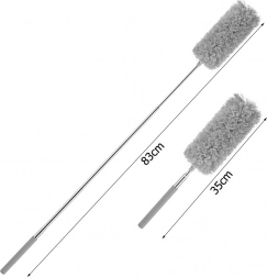 Dankzij de variabele lengte van 35–83 cm reinig je eenvoudig hoge planken, plafonds, jaloezieën, fotolijsten en plekken onder meubels. De kop is zacht voor ondergronden en geschikt voor zowel droog schoonmaken als licht vochtig afnemen zonder strepen.