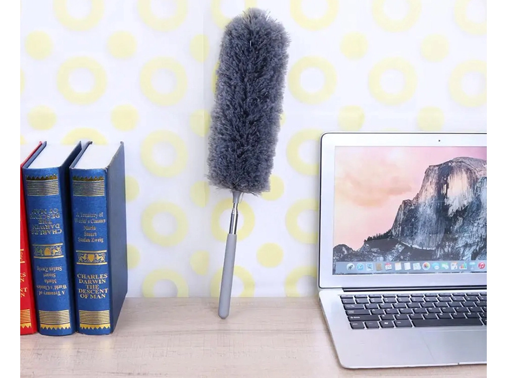 Deze grijze stoffer combineert een microvezelkop met een telescopische metalen handgreep voor maximale efficiëntie en bereik. Microvezel trekt stof aan en sluit het in, waardoor er minder werveling is en je sneller en zorgvuldiger schoonmaakt. Ideaal voor huishoudens, kantoren en het reinigen van gevoelige oppervlakken.
