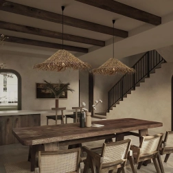 De handgemaakte ogende rieten structuur creëert zacht, knus licht en voegt natuurlijke warmte en textuur toe aan het interieur.