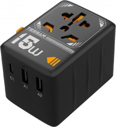 Snel en gelijktijdig opladen – twee USB‑A‑poorten (tot 12 W) en USB‑C (tot 15 W, 5 V/3 A) voeden tot drie apparaten tegelijk. Ideaal voor smartphone, tablet, draadloze oordopjes, smartwatch en camera.