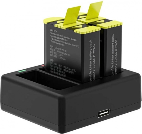 Met deze driekanaals Telesin-oplader heb je je actie-opnames altijd onder controle. Hij laadt tot 3 batterijen gelijktijdig, stopt automatisch na volledig opladen en dankzij de duidelijke LED-lampjes weet je altijd wanneer het klaar is. De twee meegeleverde batterijen met een capaciteit van 1750 mAh zorgen voor tot ca. 112 minuten opname bij 4K/30 FPS (afhankelijk van omstandigheden en instellingen).