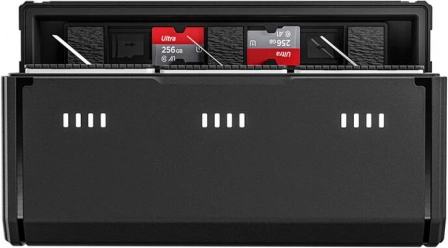 De compacte TELESIN-oplader voor GoPro HERO 9/10/11/12 camera’s kan tegelijkertijd tot drie batterijen opladen en biedt tevens veilige opslag voor geheugenkaarten. Dankzij de USB‑C‑ingang van 15 W wordt snel bijladen mogelijk, onafhankelijke LED‑indicatoren tonen de laadstatus en de duurzame ABS‑behuizing zorgt voor veiligheid onderweg. In de verpakking vind je bovendien 2 Li‑ion batterijen voor een langere gebruiksduur van je uitrusting.