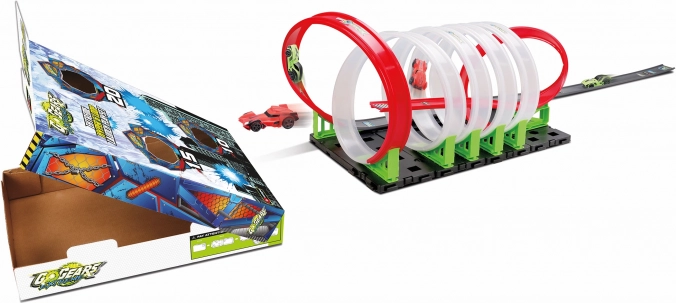 De Bburago GoGears Extreme racebaan is een perfecte keuze voor kinderen die van snelheid en spectaculaire hindernissen houden. Dankzij de zes loopings en de ramp ontstaat een dynamische baan vol uitdagingen, waar je sprongen en topsnelheid kunt uitproberen. In de verpakking zitten twee supersnelle autootjes die na het opwinden tot wel 25 meter kunnen rijden.