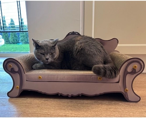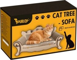 Deze stijlvolle Purlov kattensofa combineert een comfortabel ligbed en een horizontaal krabvlak in één praktisch accessoire. Het golfkarton stimuleert katten om te krabben, terwijl de ergonomische vorm zorgt voor comfortabel oprollen en langdurig loungen. Het klassieke ontwerp, dat doet denken aan een mini-sofa, wordt een blikvanger in je interieur.