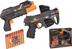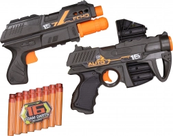 Beleef adrenalinevolle duels met dit duo schuimdartpistolen van BLACKFIRE. Het model Auto Scout biedt snelvuur dankzij het magazijn voor 6 darts en het eenvoudige spannen van de loop voor elk schot. Echo‑1 valt op door het pompmechanisme waarbij je de dart rechtstreeks in de loop plaatst en een groter bereik tot 15,2 m hebt.