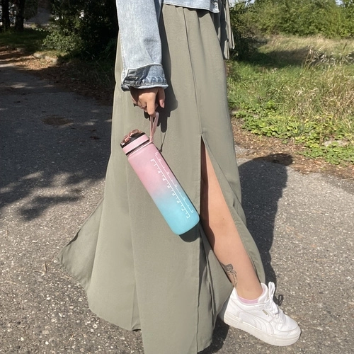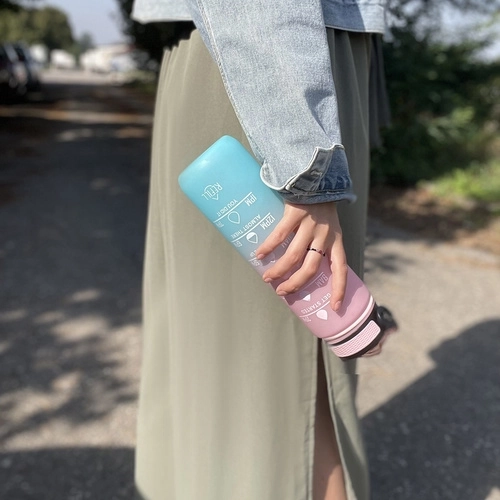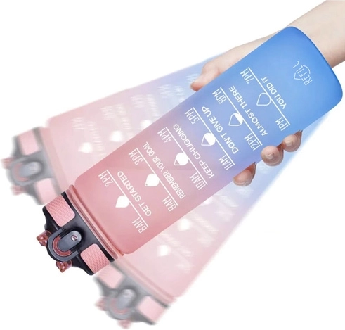 Houd je hydratatie de hele dag op peil. De fles combineert een inhoud van 1 l met een schaal in ml (tot 1000 ml) en oz (tot 32 oz) en een tijdschema van ’s ochtends tot ’s avonds, zodat je precies weet hoeveel en wanneer je moet drinken. Motiverende zinnen ondersteunen je tijdens werk, sport en reizen.