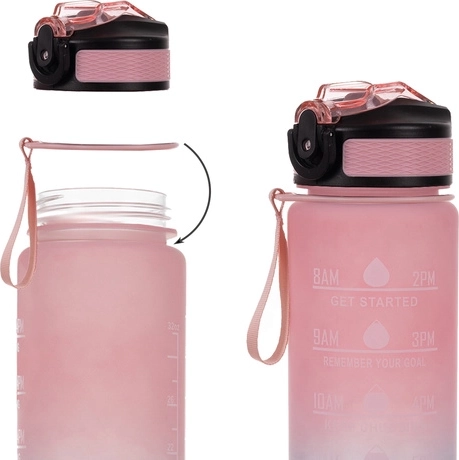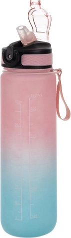 Motiverende waterfles 1 l met rietje en drinktimer, roze‑blauw