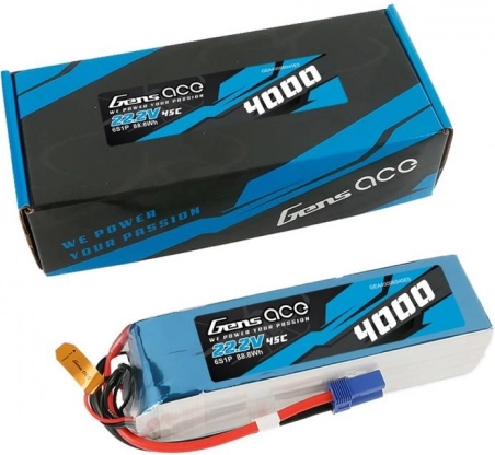 Deze Gens Ace 6S (22,2 V) LiPo-accu met 4000 mAh capaciteit en 45C-belasting levert krachtige, stabiele prestaties voor veeleisende toepassingen – van racedrones tot high-performance RC-modellen. Dankzij kwaliteitscellen en zorgvuldige constructie kan hij zowel intense acceleratie als lange vluchten aan.