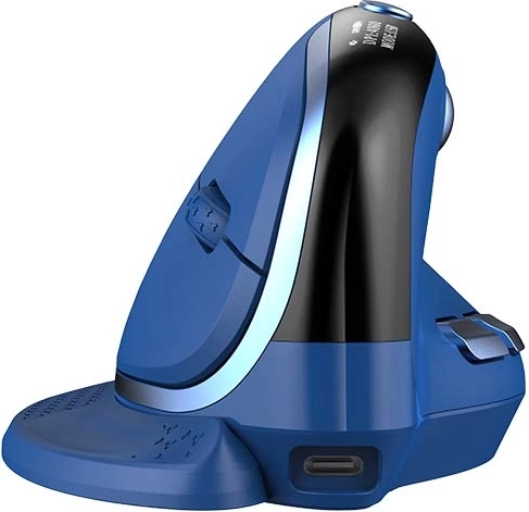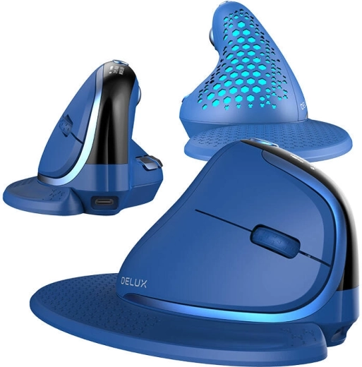 De DELUX M618XSD is een verticale muis ontworpen voor een natuurlijke handhouding en minimale peesbelasting. Het geïntegreerde OLED‑display toont de batterijstatus, verbindingsmodus en de huidige DPI (600–4000). Dankzij de 1000 mAh batterij gaat hij tot 2 weken mee bij normaal gebruik en wordt hij opgeladen via USB‑C.