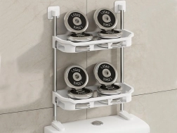 Deze wandplank boven het toilet is een ideale keuze voor zowel kleine als grotere badkamers. De twee niveaus bieden voldoende opbergruimte voor flesjes, zeep, handdoeken en borstels, terwijl alles binnen handbereik blijft. Het minimalistische ontwerp in het wit past gemakkelijk bij de meeste interieurs.