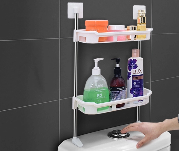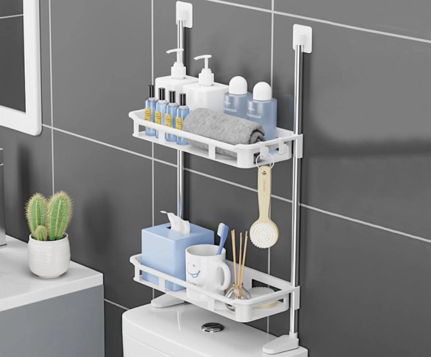 Twee niveaus bieden praktische opbergruimte voor alledaagse benodigdheden zonder vloerruimte in te nemen. Ideaal voor kleine badkamers.