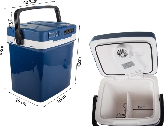 Deze ruime thermo-elektrische reiskoelbox combineert koelen en verwarmen, zodat u hem zowel in de zomer als in de winter gebruikt. Onder voeding houdt hij de inhoud tot circa 8–10 °C koeler dan de omgeving (bij 25 °C omgeving tot -8 °C ten opzichte van de omgeving) en in de verwarmingsmodus kan hij etenswaren verwarmen tot 50–65 °C. Een uitstekende oplossing voor drankjes, snacks en kant-en-klare maaltijden onderweg.