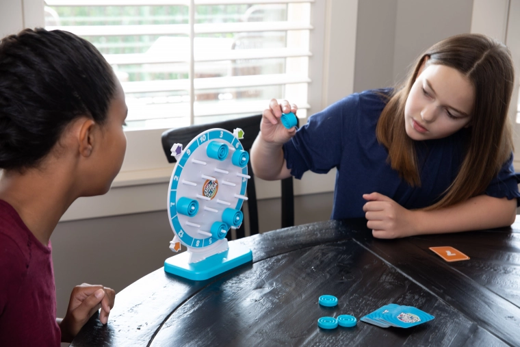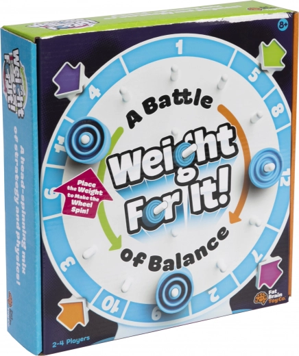 Het gezelschapsspel Fat Brain Weight for It biedt een slimme combinatie van eenvoudige regels en spannende strategie. Het doel is om de gewichten zo te plaatsen dat het getal aan de rand van het wiel precies stopt op de waarde van jouw kaart. Elke keuze van positie en gewichtsgrootte beïnvloedt het evenwicht – winnen doet degene met het beste gevoel voor inschatting en een koel hoofd.