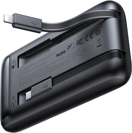 - Geïntegreerde kabels USB‑C en Lightning – directe compatibiliteit zonder extra kabels.