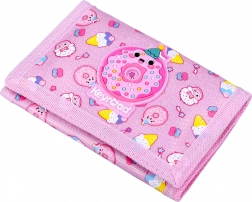 De portemonnee is verkrijgbaar in 3 verschillende uitvoeringen: blauw met aardbei, roze met donut en rood met konijntje. De compacte afmetingen zijn ideaal voor in de schooltas, rugzak of jaszak.