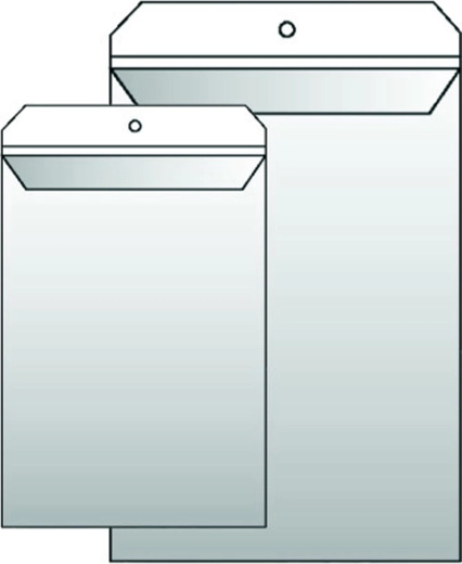 Transparante hanghoes in A5-formaat voor documenten, geopend aan de bovenzijde voor eenvoudig in- en uitnemen van papier.