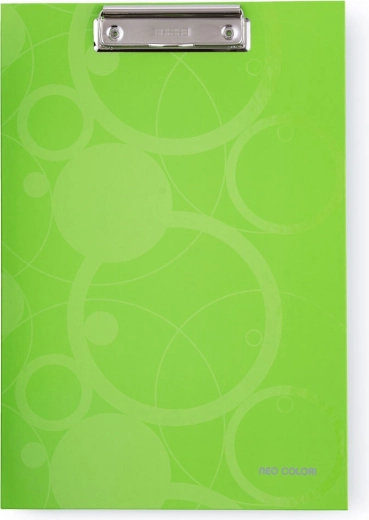De stijlvolle Neo Colori schrijfonderlegger in een opvallende groene kleur biedt extra stevig karton en een praktische metalen klem voor het veilig vastzetten van uw documenten.