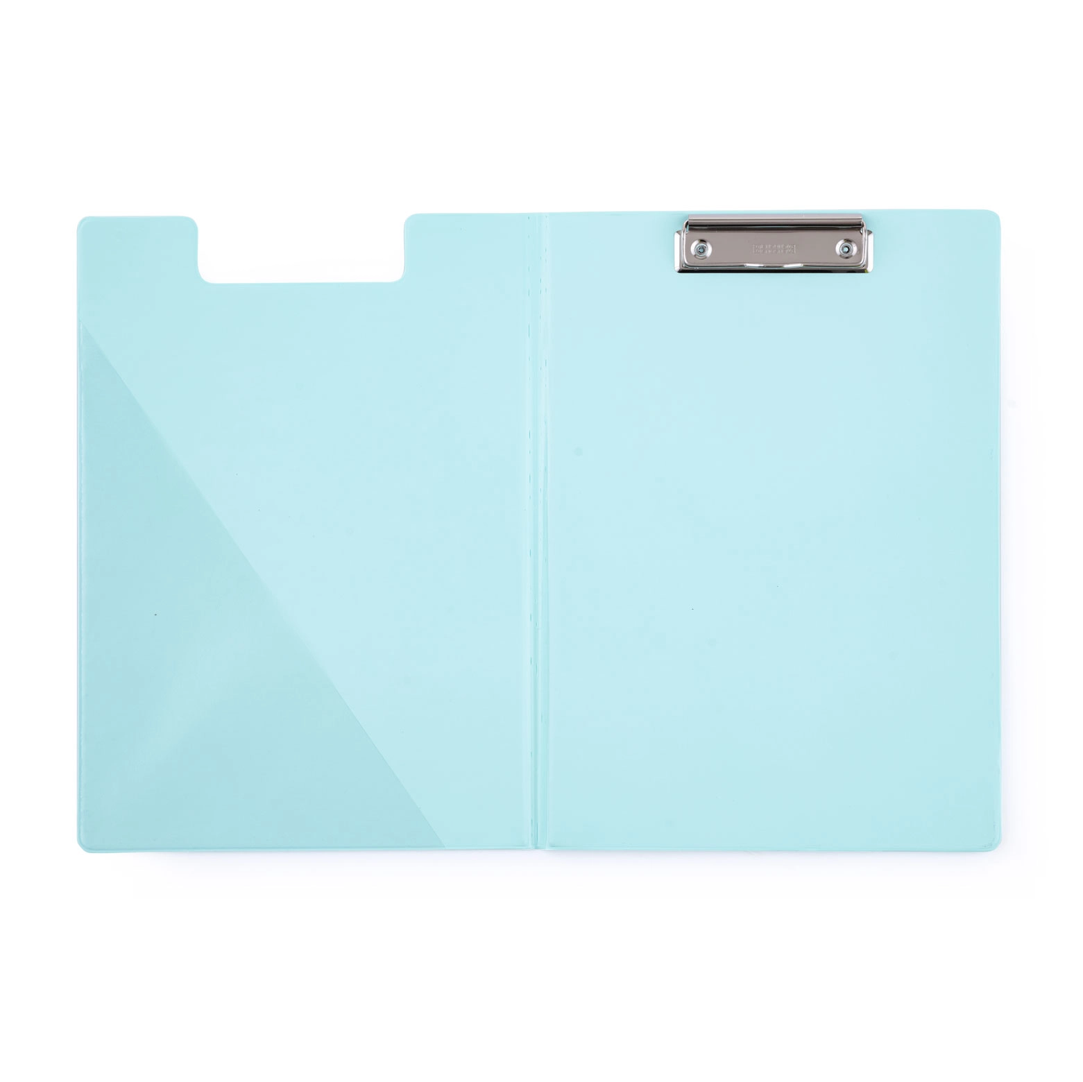 Moderne afsluitbare schrijfonderlegger met metalen klem in pastelgroen, vervaardigd van extra stevig karton met een transparant binnenvak.