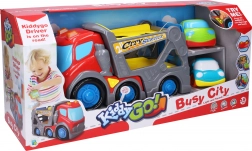 Met deze Kiddy takelset beleven kinderen veel realistisch speelplezier. De takelwagen met twee platforms en een kantelbare oprijplaat maakt het makkelijk om de meegeleverde autootjes te laden, terwijl de licht- en geluidseffecten voor een authentieke sfeer zorgen. Dankzij de vrijlopende wielen bewegen de voertuigen soepel over de vloer.