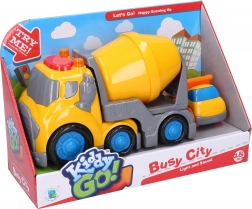 Deze Kiddy-set brengt realistisch bouwplezier voor kinderen. De grote betonmixer van 19,5 cm verrast met licht- en geluidseffecten, eenvoudig te activeren via de knop op het dak van de cabine. De mixeroplegger is draaibaar, wat de motoriek en de speelfantasie stimuleert.