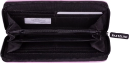 Stijlvolle damesportemonnee in paarse kleur, die elegantie en functionaliteit combineert in een praktisch design.