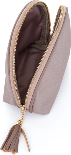 Ontdek de praktische oplossing voor je kleinere cosmetica met de ronde reiscosmetictas PLUS. Deze tas, gemaakt van hoogwaardig leer in de moderne kleur mocca, combineert stijl en functionaliteit in één: