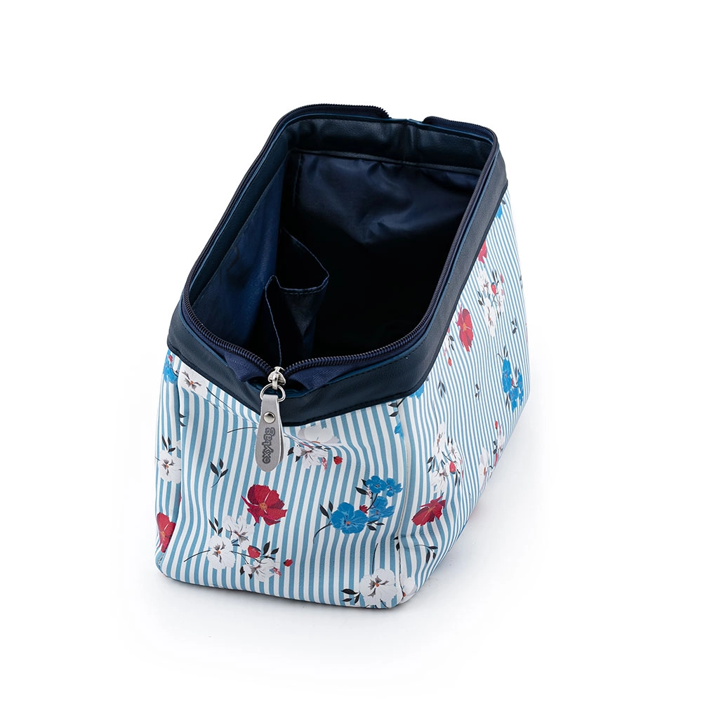 De cosmetictas Holiday Navy met een elegant bloemenpatroon is gemaakt voor moderne vrouwen die hun cosmetica altijd bij de hand willen hebben. Het materiaal van de tas is duurzaam en gemakkelijk schoon te maken, waardoor het een ideale metgezel is voor op vakantie en voor dagelijks gebruik.