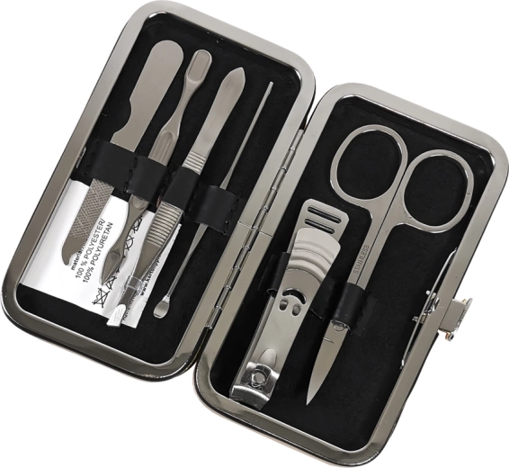 Ontdek het gemak en de veelzijdigheid van deze reismanicureset. Bevat:
