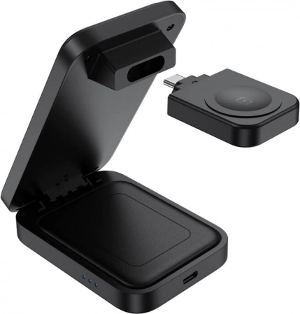 Het opvouwbare ontwerp maakt meenemen eenvoudig. Het afneembare deel voor het opladen van smartwatches kan als zelfstandig apparaat functioneren via USB-C.