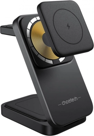 De Choetech magnetische 3-in-1 oplader biedt draadloos opladen voor drie apparaten tegelijk. Ondersteunt de nieuwste iPhone-series 12, 13, 14 en 15, iWatch Ultra, SE, 8, 7, 6, 5, 4, 3, 2 en AirPods Pro 3, 2, Pro en Pro 2. De oplader biedt de benodigde veelzijdigheid en functionaliteit om je bureau te organiseren en zorgt ervoor dat je apparaten altijd opgeladen zijn.