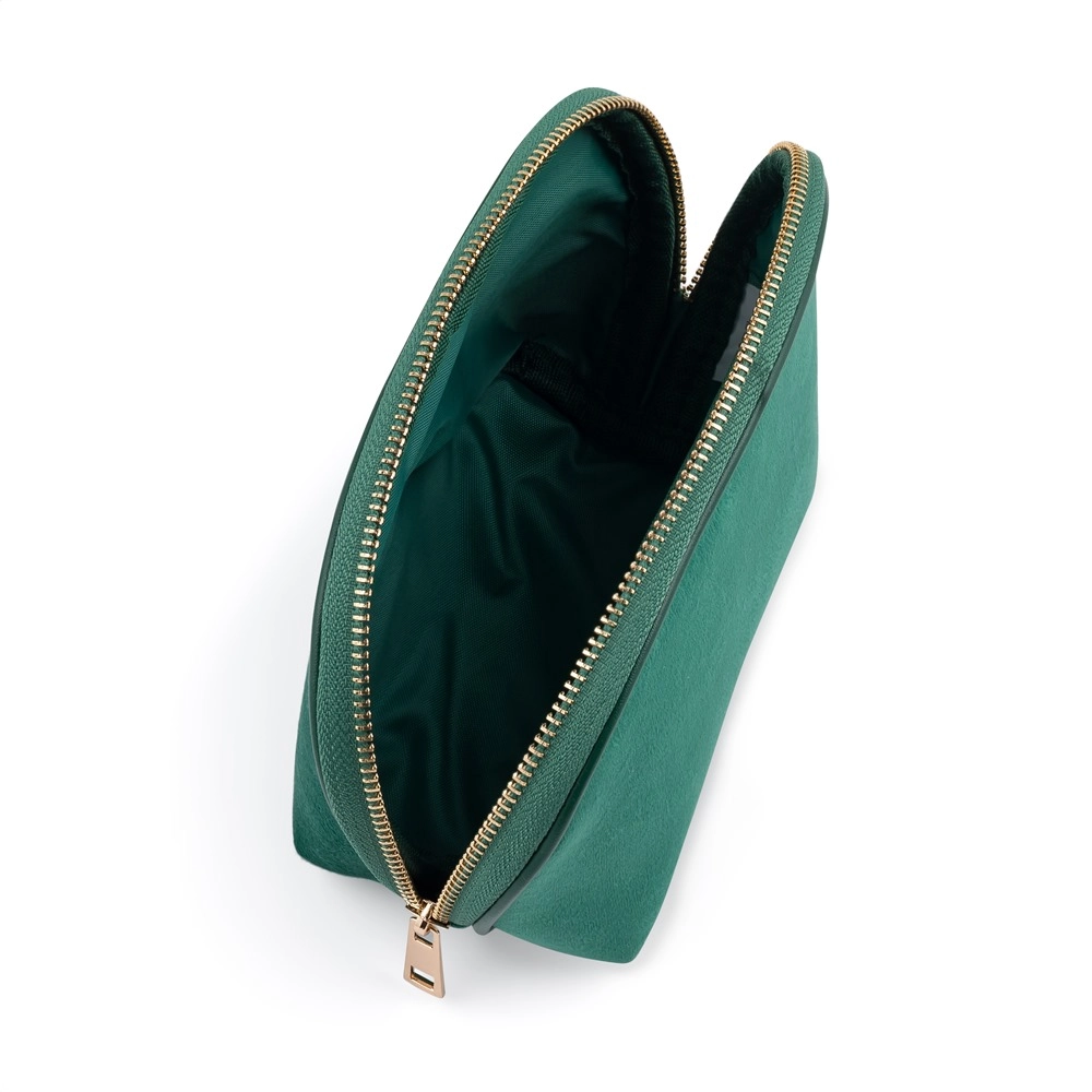 Praktische reis cosmetische tas met een ronde vorm in elegant groen, ideaal voor het opbergen van kleinere toilet- en cosmetica-artikelen. Dankzij de compacte afmetingen 15,5 × 14 × 7,5 cm heb je alles overzichtelijk bij de hand, thuis en onderweg.