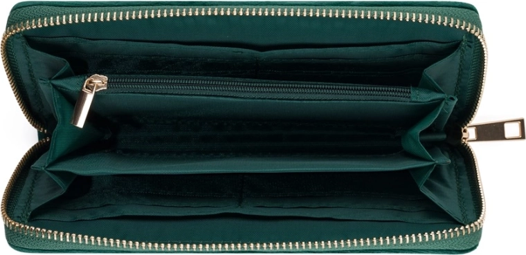 Deze damesportemonnee biedt de perfecte combinatie van stijl en functionaliteit voor de moderne vrouw. Het elegante ontwerp wordt benadrukt door een groene fluwelen tint, die een vleugje luxe toevoegt. De portemonnee biedt: