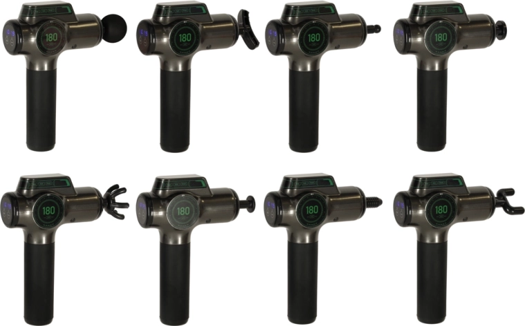Voorzien van acht verwisselbare opzetstukken die personalisatie van de massage mogelijk maken naar uw behoeften. Het LED-display toont het batterijniveau en de intensiteit van de ingestelde massage, waardoor u precieze controle hebt over de intensiteit - van milde ontspannende massage tot diepe spierstherapie.
