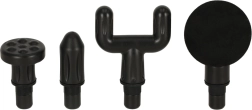 De massagepistool bevat vier opzetstukken voor verschillende lichaamszones: