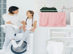 Elke van de 5 stangen kan afzonderlijk worden neergelaten. Je hangt de was comfortabel op hoogte op en trekt de stang daarna omhoog naar het plafond. Vergrendelingskogeltjes houden de positie veilig.