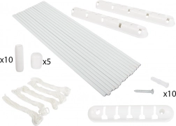 Verpakkingsinhoud: 15 stalen stangen, 5 koorden, 10 schroeven, 10 pluggen, 5 vergrendelingskogeltjes, 10 stangverbinders, 2 koordhouders, 1 kogelhouder, originele verpakking.