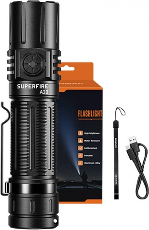 De Superfire A20 zaklamp heeft een helderheid van 1.700 lumen. Hij kan afstanden tot 300 meter verlichten, wat hem ideaal maakt voor het verlichten van grote gebieden bij zoekacties of reddingsoperaties, evenals voor alledaagse activiteiten waar precieze verlichting belangrijk is.