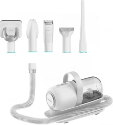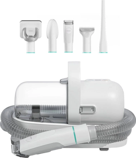 De NEAKASA vachtverzorgingsset combineert borstelen, knippen en het direct opzuigen van haren tijdens de grooming. Dankzij de hoge zuigkracht blijft je huis schoon en de lucht fris – losse haren, stof en allergenen eindigen in de afgesloten container. De stille werking en 3 instelbare zuigniveaus zorgen voor rust en comfort, ook voor gevoelige huisdieren.