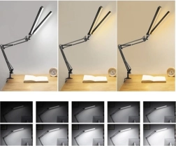 Ervaar het voordeel van energiezuinige LED-lampen met lange levensduur, die het energieverbruik aanzienlijk verminderen zonder in te boeten op de kwaliteit van de verlichting. Deze lamp is uitgerust met een dubbele lichtbron, zodat u optimale verlichting kunt hebben op twee verschillende werkplekken tegelijk. Dankzij de verstelbare arm kunnen hoeken en hoogte van de verlichting eenvoudig worden aangepast aan uw behoeften.