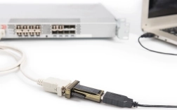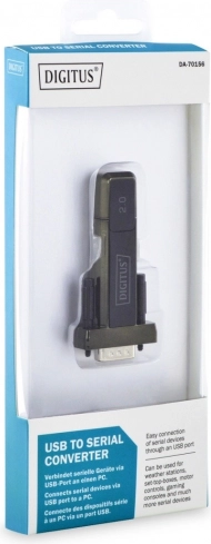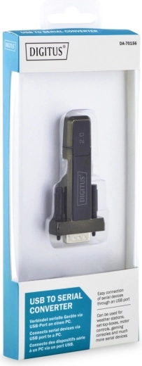 De adapter verbindt apparaten met een 9-pins seriële poort met moderne USB-computers.
